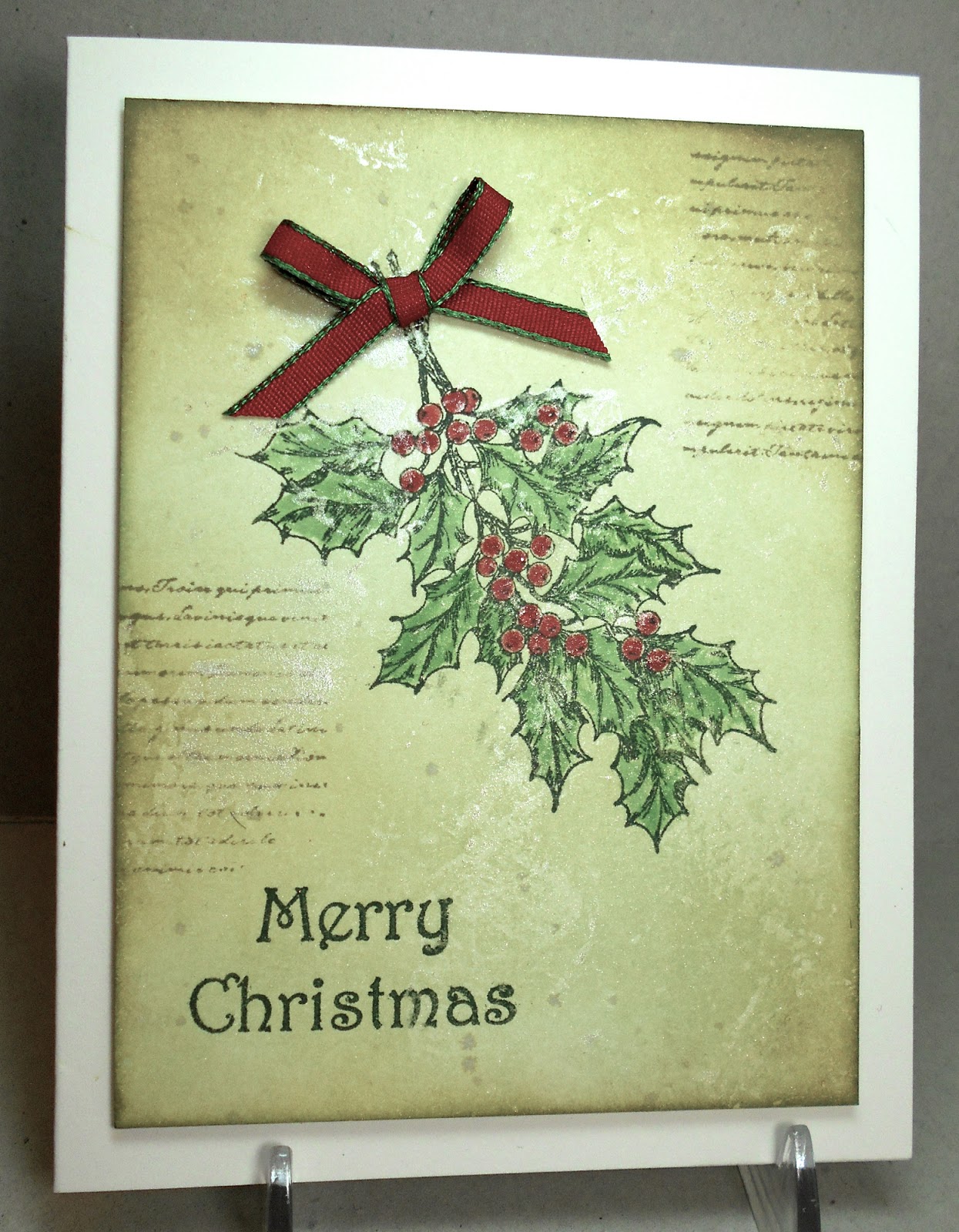 ReplyDeleteI love the vintage colors and the script stamped on this MOP background! Gorgeous holly too! Thanks for bring it over to Merry Monday!
