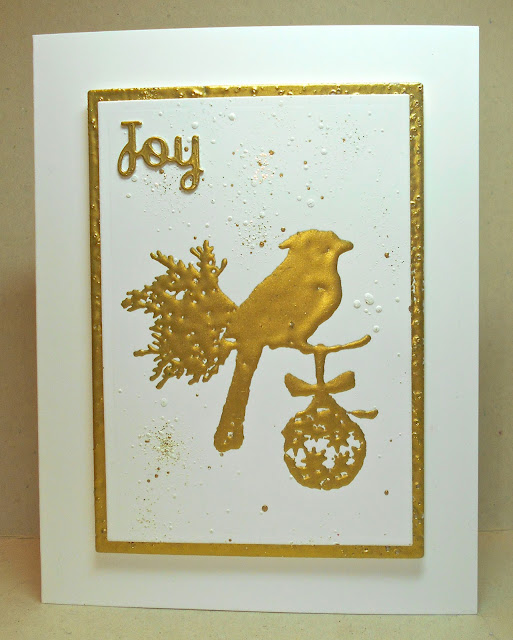 I used a shimmery off-white cardstock that matched the pearlescent embossing paste for the card base.
