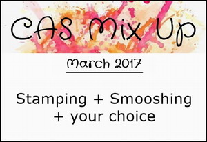 Since it's smooshed, has some stamping, and one other thing of my choice (the poppy die cut), I'm linking it up at CAS Mix Up's smooshing challenge.